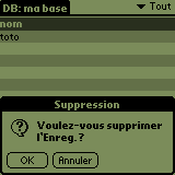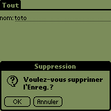 Il est aussi possible de supprimer un ensemble de fiches, mais cette technique est délicate. Il faut entrer dans le mode de recherche par filtres, ensuite faire une recherche des fiches à supprimer. Puis dans le menu Enreg. vous appuyez sur l'item Supprimer tout . A ce moment là un boite de dialogue vous demande de confirmer votre action.