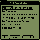 La section «Boutons» permet de choisir l'action des boutons de votre palm suivant la fenêtre ouverte.